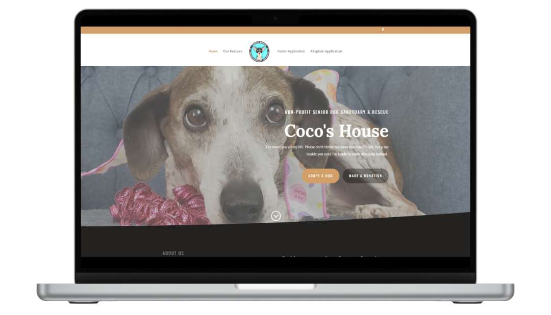 Website Design Coco’s House Senior Dog Sanctuary & Rescue Mississippi We were honored to create this website for a nonprofit senior dog rescue in Mississippi. They are able to upload information & photos of adoptable dogs and people interested in adoption or fostering are able to register online.