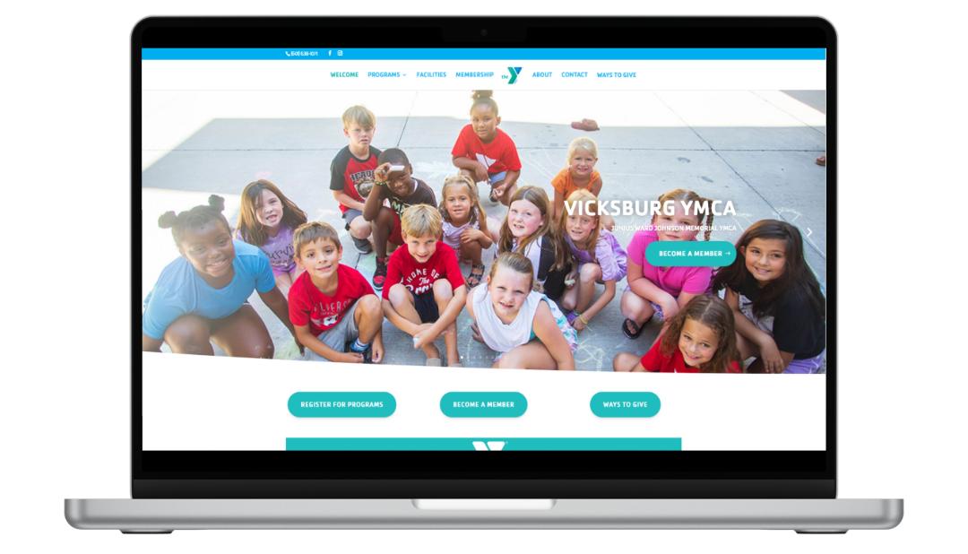 Website Design Vicksburg YMCA Vicksburg, Mississippi We created a modern site for the Vicksburg YMCA with information about their various programs and facilities. There are links for membership & registration along with access to updated schedules for activities.